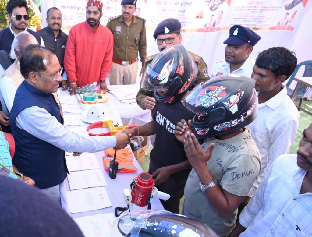 जीवन का सुरक्षा कवर है हेलमेट, सीएम श्री विष्णुदेव साय ने हेलमेट वितरित कर युवाओं को दिया सड़क सुरक्षा का संदेश।