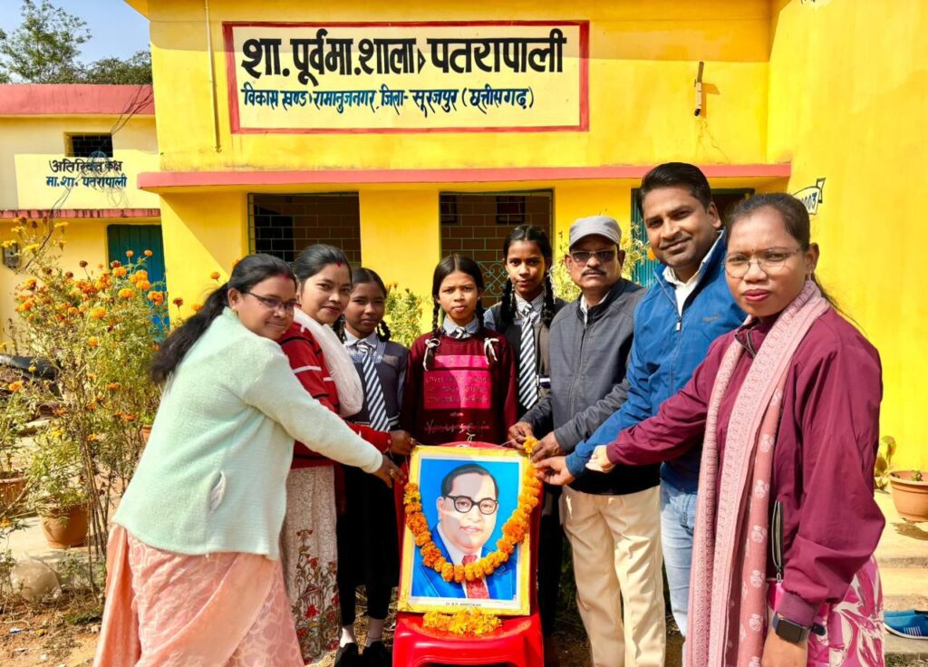 सूरजपुर, दिनांक 26 नवंबर 2025 कलेक्टर श्री एस. जयवर्धन एवं जिला मिशन समन्वयक समग्र शिक्षा मनोज कुमार साहू के निर्देशन एवं विकासखण्ड शिक्षा अधिकारी डी.एस. लकड़ा के मार्गदर्शन में रामानुजनगर के समस्त विद्यालयों में संविधान दिवस पर प्रस्तावना वाचन एवं विभिन्न गतिविधियों का आयोजन किया गया। संविधान दिवस के उपलक्ष्य में माध्यमिक शाला पतरापाली में आज एक गरिमामय कार्यक्रम आयोजित किया गया। कार्यक्रम की शुरुआत संविधान रचयिता डॉ. भीमराव अम्बेडकर के छायाचित्र पर माल्यार्पण एवं श्रद्धांजलि अर्पित कर की गई।