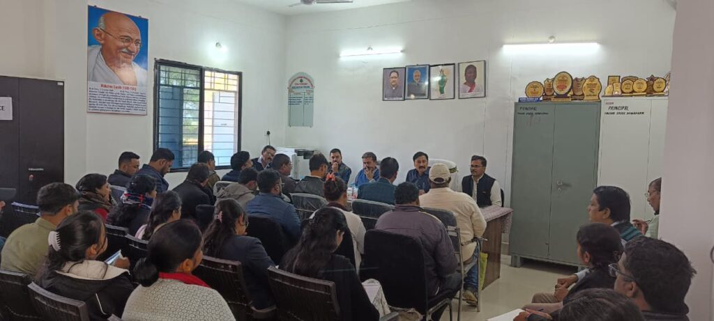 सूरजपुर कलेक्टर श्री एस. जयवर्धन के निर्देशानुसार जिले में शिक्षा गुणवत्ता में विशेषकर कक्षा 10वीं एवं 12वीं की बोर्ड परीक्षाओं में बेहतर परीक्षा परिणाम हेतु पीएमश्री सेजेस नवापारा, जिले के समस्त सेजेस के प्राचार्यों एवं प्रत्येक सेजेस विद्यालय से 02 वरिष्ठ व्याख्याताओं का जिला शिक्षा अधिकारी श्री अजय मिश्रा के द्वारा बैठक लिया गया। बैठक में डी.एम.सी. मनोज साहू, ए.डी.पी.ओ.रविन्द्र प्रताप सिंहदेव, श्री दिनेश द्विवेदी, नोडल प्राचार्य पी.सी. सोनी, शा.क.उ.मा.वि. बिश्रामपुर, प्राचार्य श्री आशीष भट्टाचार्य भी शामिल रहे। बैठक में जिला शिक्षा अधिकारी द्वारा शैक्षणिक गुणवत्ता में सुधार एवं उत्कृष्ट परीक्षा परिणाम हेतु विस्तृत समीक्षा की गई एवं शत्-प्रतिशत प्रथम स्थान प्राप्त करने हेतु निर्देशित किया गया। तत्पश्चात् छात्र/छात्राओं व शिक्षकों से कक्षा में जाकर संवाद करते हुए विद्यालय में शत्-प्रतिशत उपस्थिति एवं परीक्षा हेतु बचे हुए दिनों में गहन अध्ययन-अध्यापन हेतु निर्देशित किया गया।
