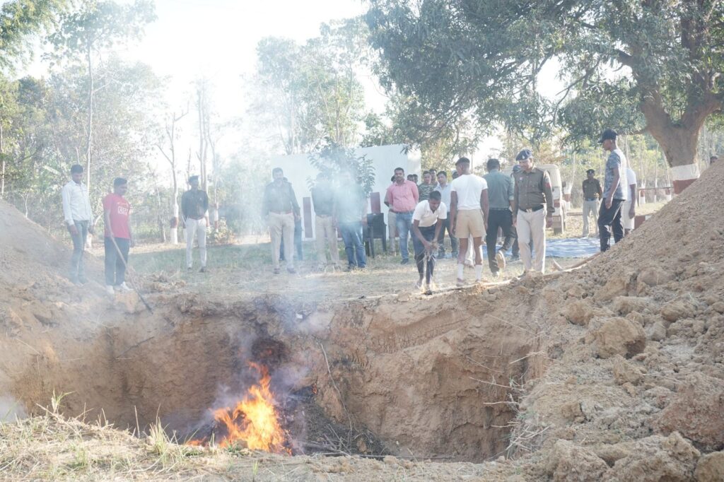 सूरजपुर पुलिस ने 65 लाख कीमत के नशीले पदार्थ नष्ट किए, डीआईजी व एसएसपी सूरजपुर ने की कार्यवाही।